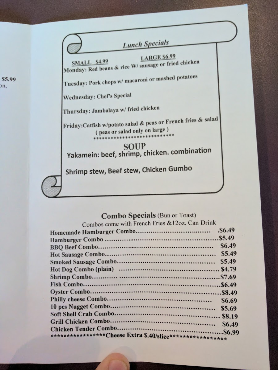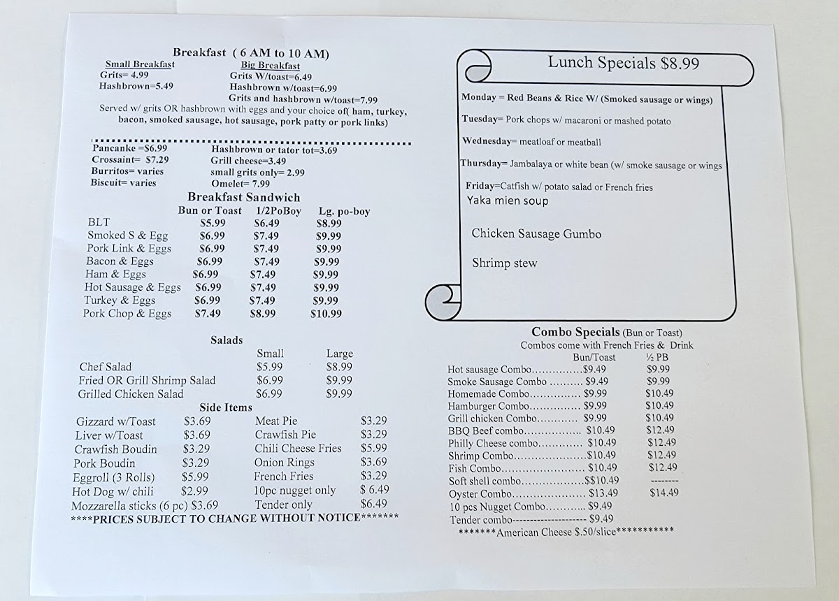 Patrons have raved about signature dishes like the shrimp stew and shrimp po' boy, celebrated for their fresh ingredients and robust flavors. Regulars recommend the fried chicken wings alongside shrimp fried rice, praised for their perfect crispiness and satisfying taste. Don't miss the weekly specials that promise great value, as highlighted by loyal customers.